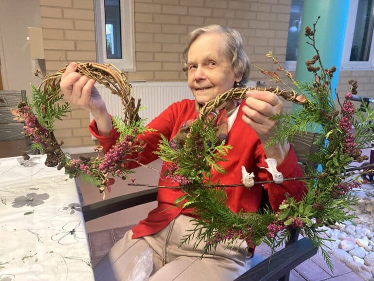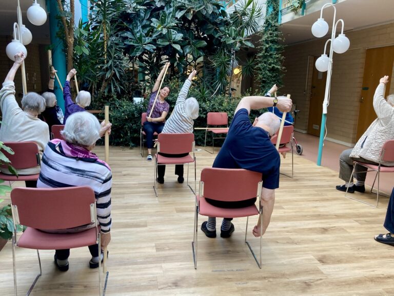 Saga Kaskenpuistossa on ilo liikkua. Järjestämme asukkaille monta jumppaa viikossa ja maanantaisin liikkeitä tehostaa jokin väline. Tällä viikolla harjoitimmme liikkuvuutta keppien avulla.