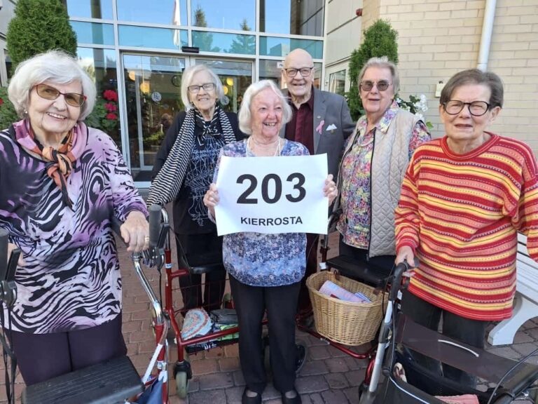 Osallistuimme Ikäinstituutin ulkoilukampanjaan ja teimme siihen oman haasteen: Saammeko kerättyä yhdessä sata kierrosta talon ympäri ohjatussa ulkoilussa? Tavoite ylittyi yli kaksinkertaisesti!