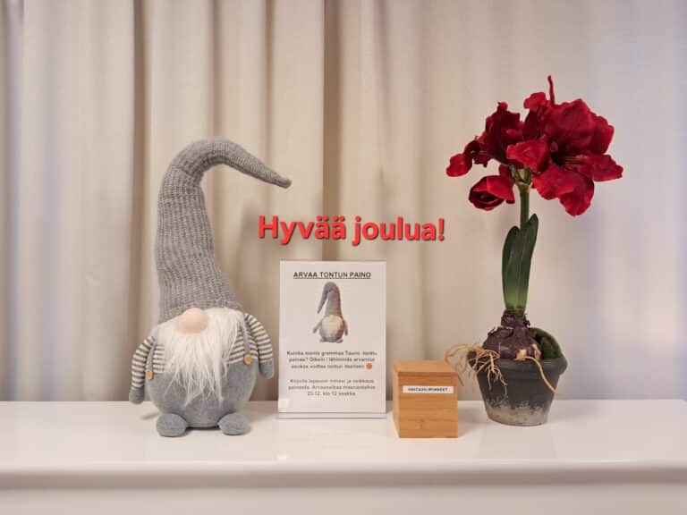 Saga Torilinnassa on virittäydytty joulutunnelmaan mm. muusikin ja joulukoristeiden parissa. Leikkimieltä joulunaikaan tuo tontun painon arvuuttelu.