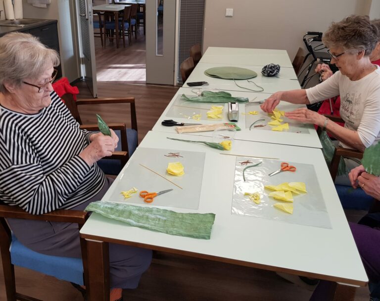 Tällä viikolla asukkaat tekivät paperinarusta keväisiä tulppaaneja.