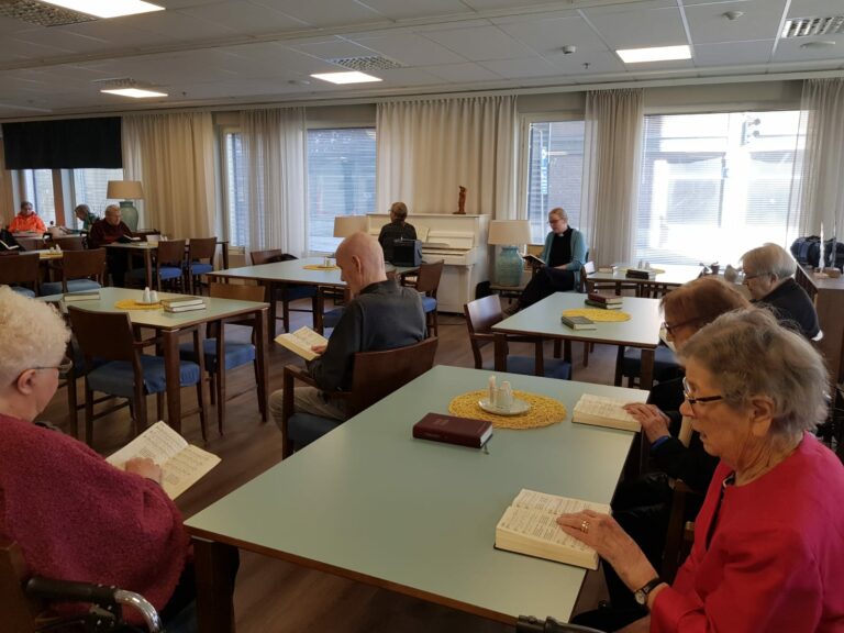 Kerran kuukaudessa pidettävä hartaushetki on tärkeä osa talon ohjelmaa.