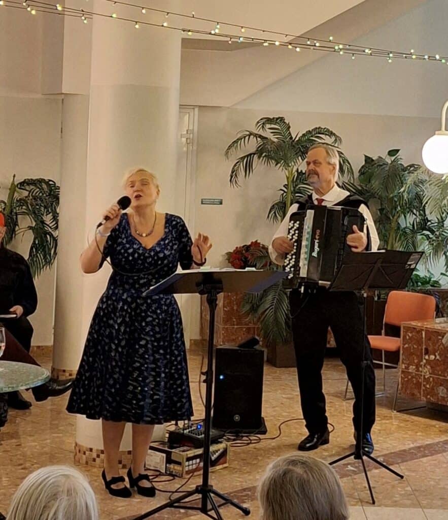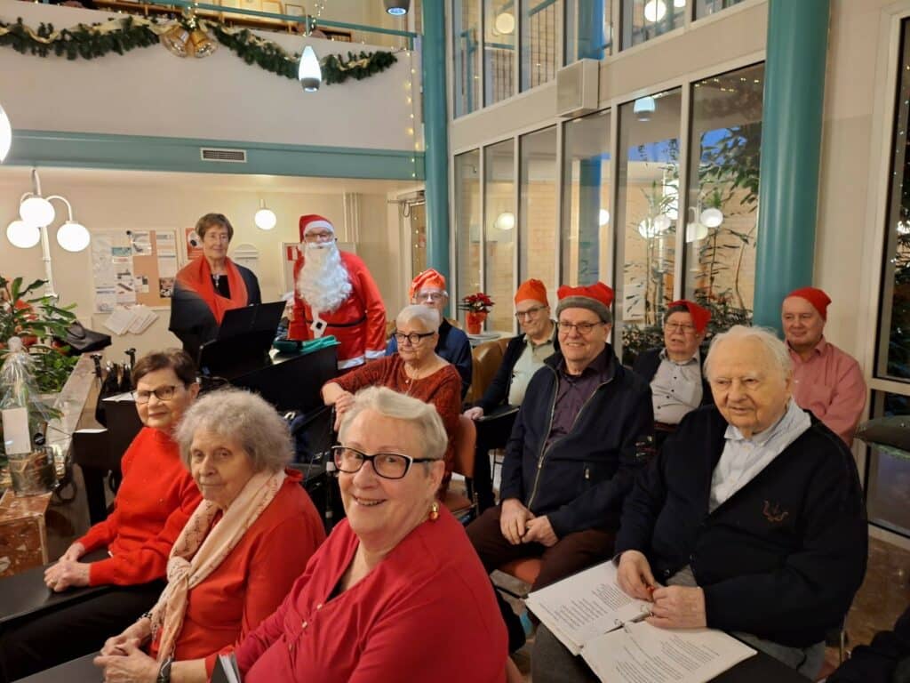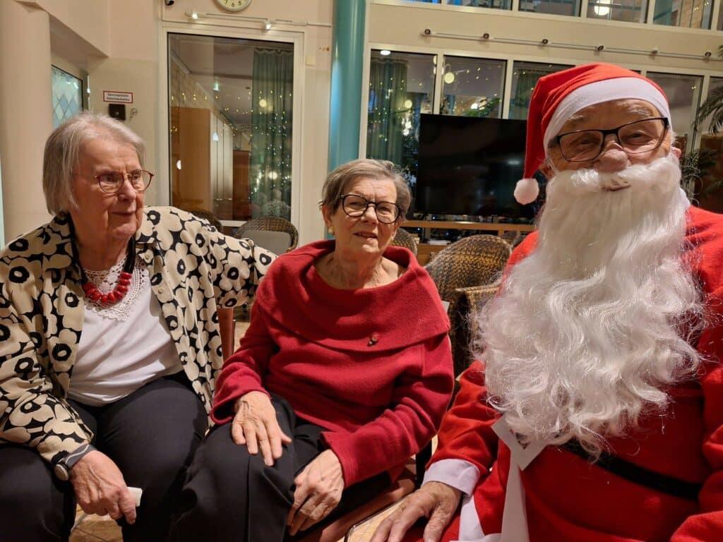 Joulu on taas, joulu on taas, kattilat täynnä puuroo! Asukkaiden joulujuhlien ohjelma koostui Maarit Haapasaaren ja Timo Heinosen perinteisestä konsertista, jossa he esittivät joulun rakkaimpia lauluja. Asukaskuoro Kööri esitti myös joululauluja Arja Lylyn johdolla ja joulupukkikin ehti kiireiltään piipahtamaan meillä. Ja miksipä ei – Saga Kaskenpuisto on täynnä kilttejä asukkaita!