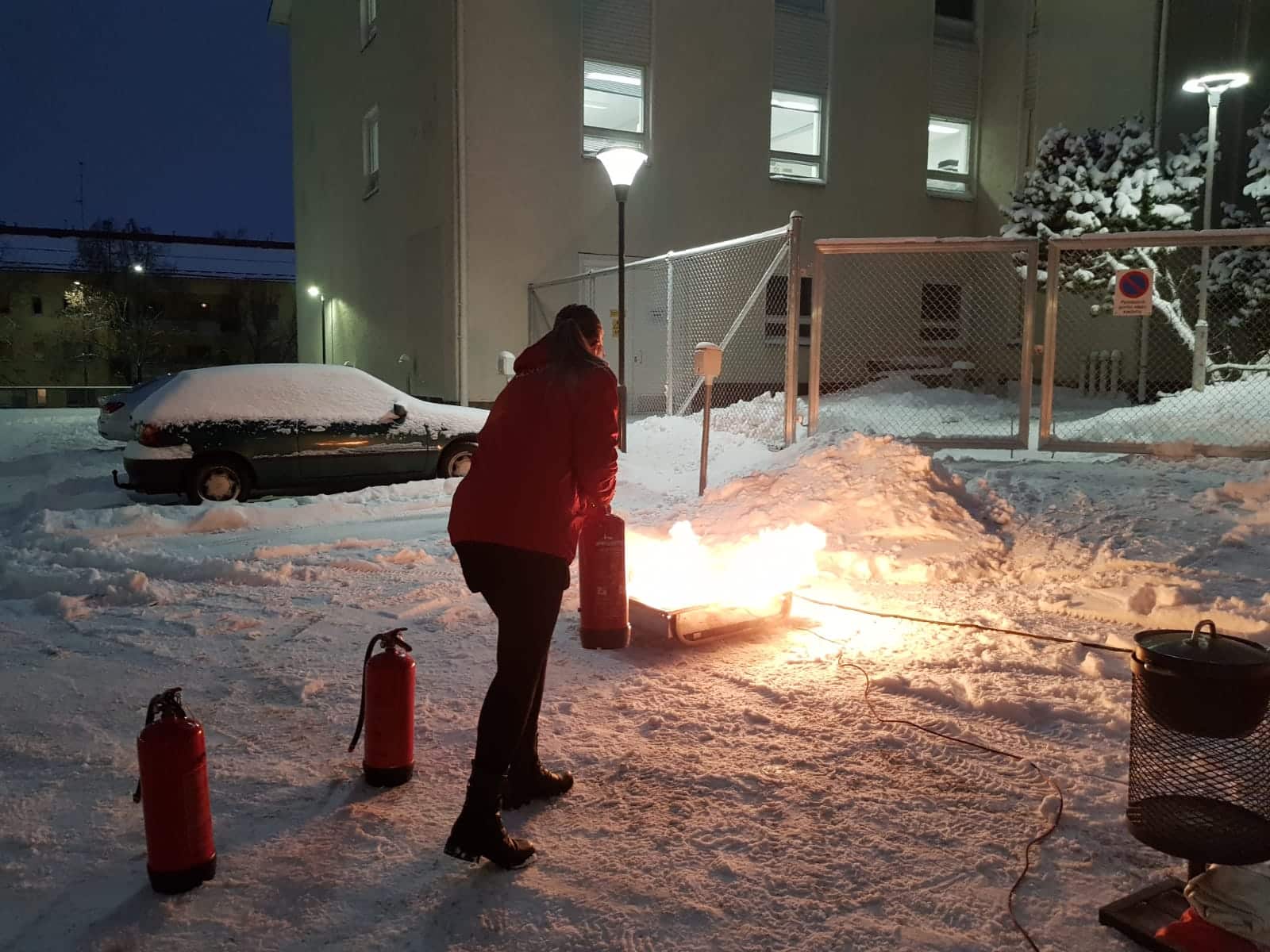 Saga Torilinnan henkilöstöä koulutetaan säännöllisesti. Palo- ja pelastuskoulutuksessa kerrattiin mm. vaaratilanteissa toimimista ja harjoiteltiin vaahtosammuttimen sekä sammutuspeitteen käyttöä.