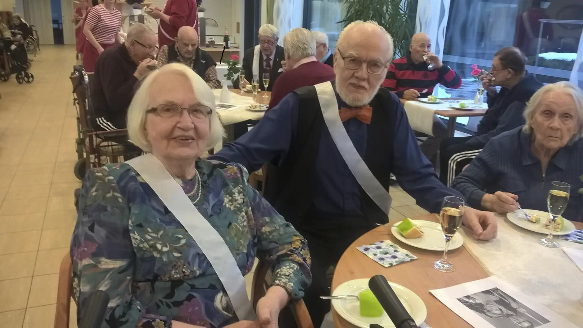 Osallistujia oli noin 100, tarjoiluna kuohuviiniä ja prinsessakakkua. Alusta asti asuneet asukkaat (12) ja työntekijät (4) kantoivat ylpeinä airutnauhaa. Helapuiston Satumaa -laulu sai ensi-illan. ”Kyllä kaikilla oli niin mukavaa”