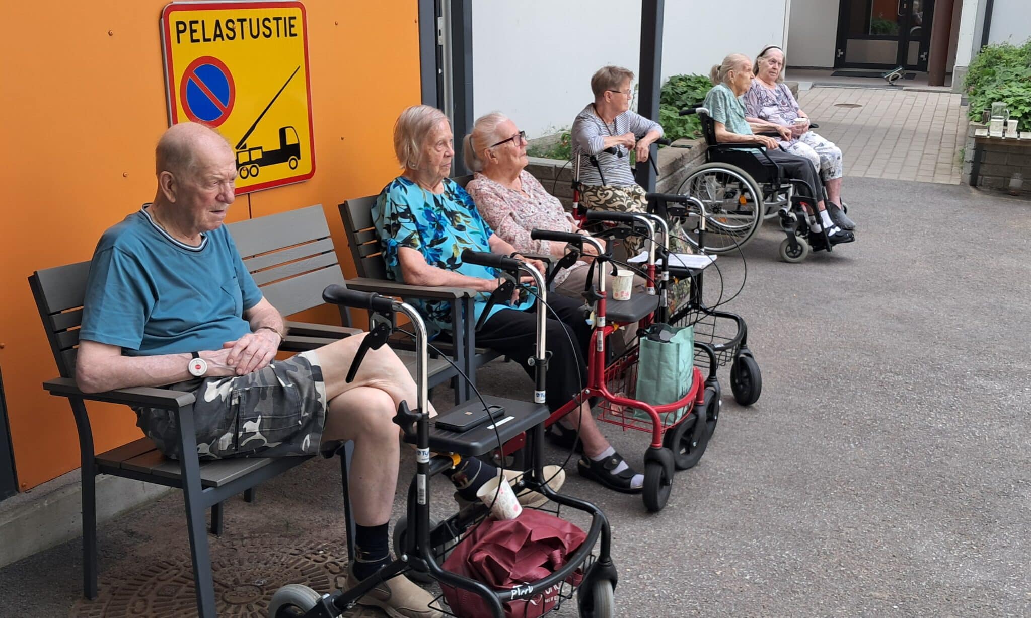 Helleaalto on pysytellyt Suomen yllä jo kolmatta viikkoa. Saga Torilinnan asukkaat ovat löytäneet pihalta varjopaikan, jossa on mukava istuskella myös helteellä. Tiistain ulkoilun yhteydessä kesäpäivän kruunasi kotimainen tanssimusiikki, jota moni asukas jäi mielellään kuuntelemaan hyvässä seurassa.