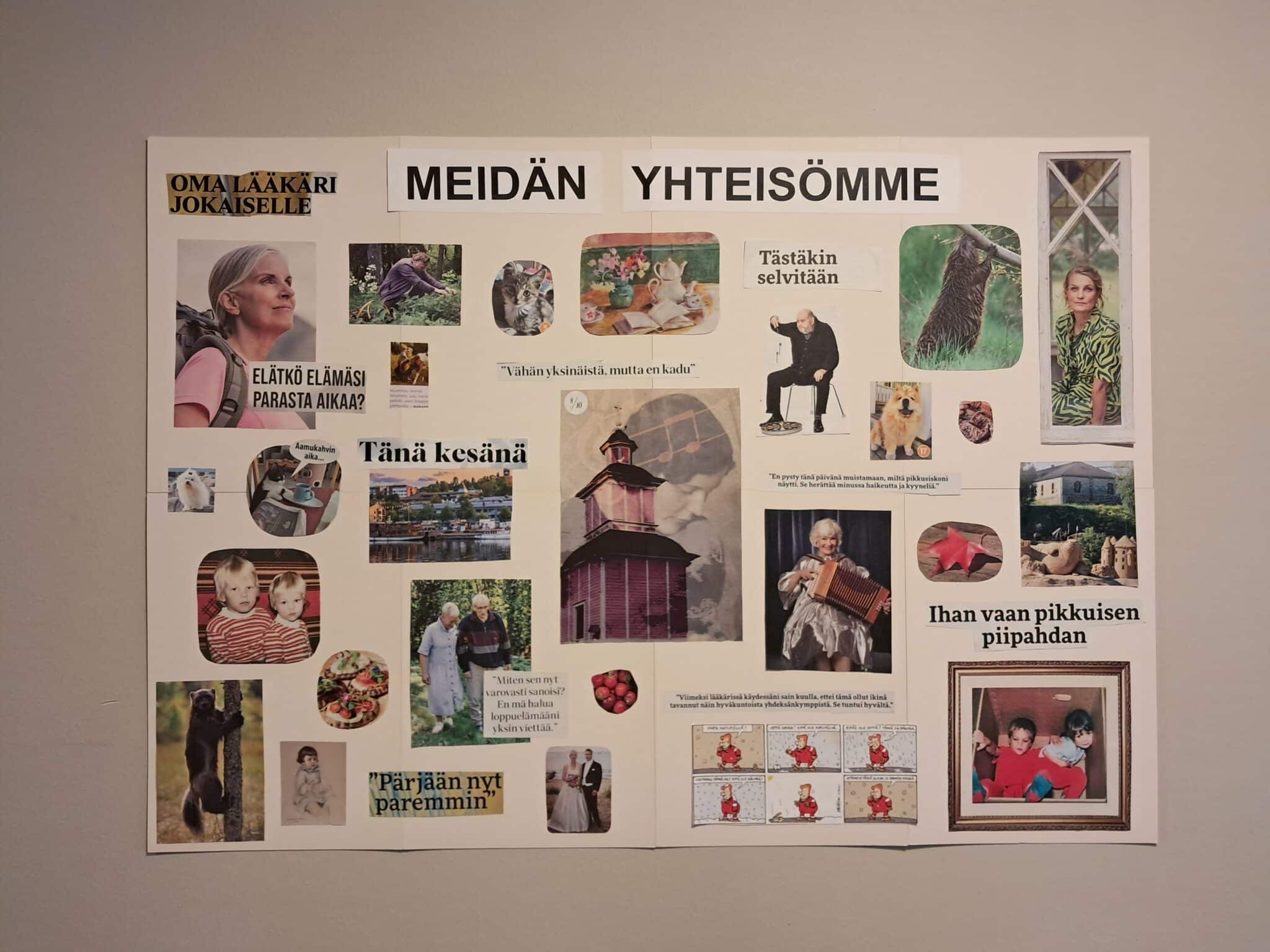 Tämä vuoden vanhustenviikon teemana on yhteisöllisyys. Tästä inspiroituneena kädentaidot ryhmässä teimme asukkaiden kanssa meidän omaa yhteisöä esittävän kuvakollaasin. Valmis kollaasi ripustettiin hissiaulaan kaikkien ihailtavaksi.