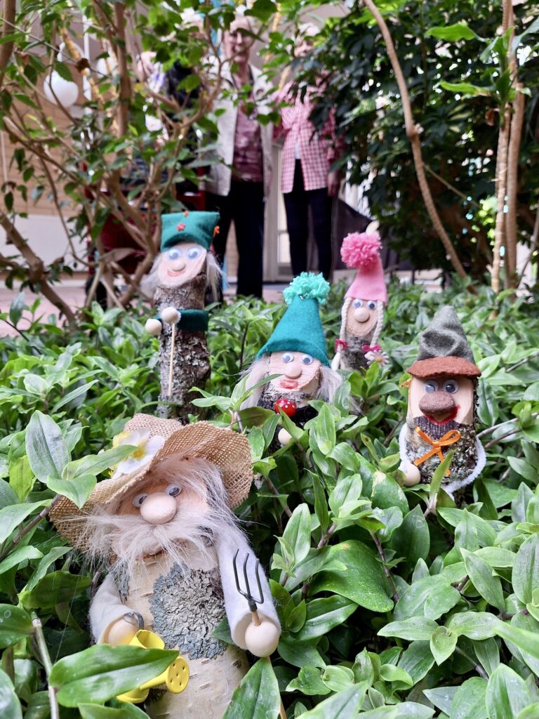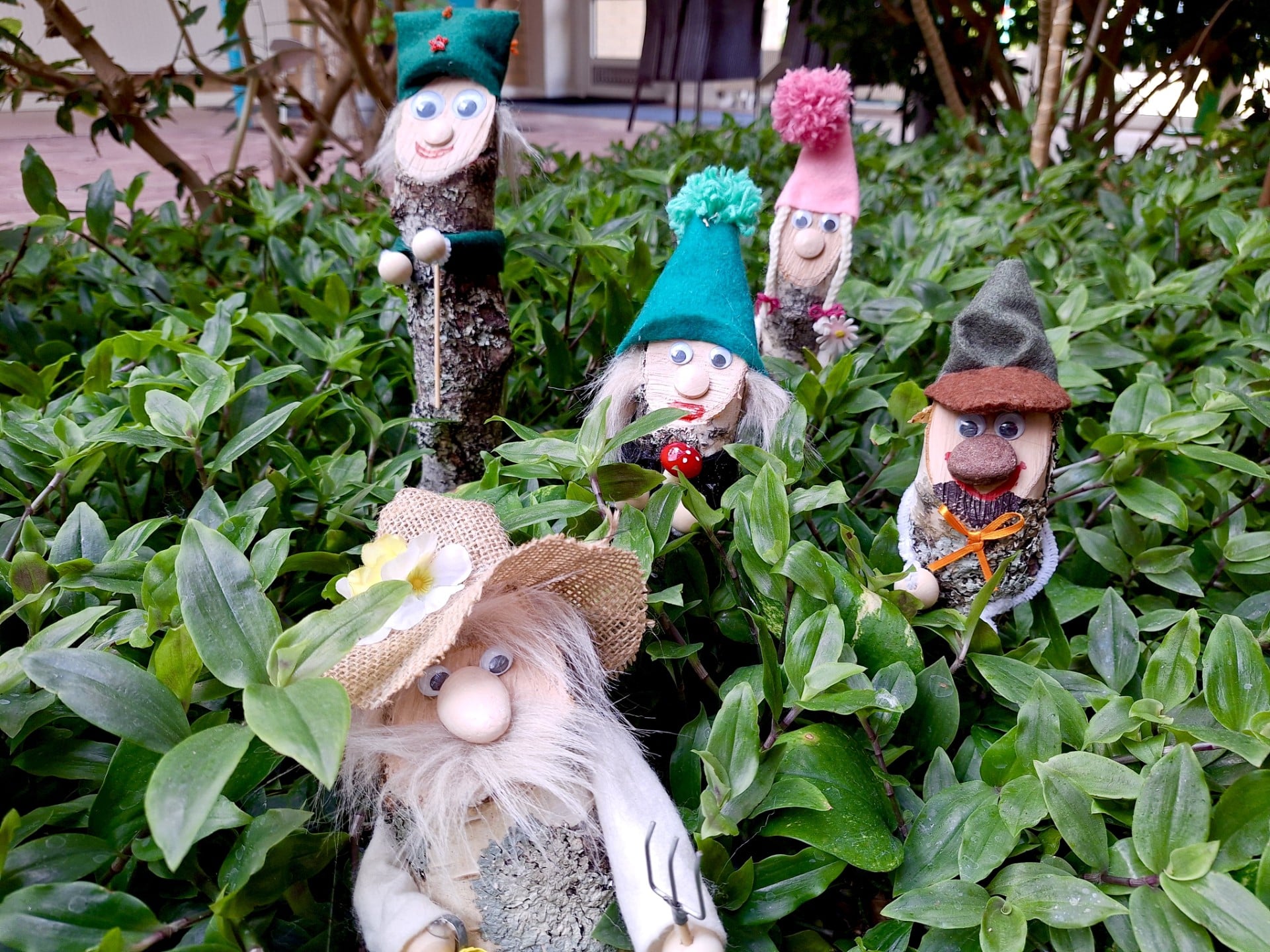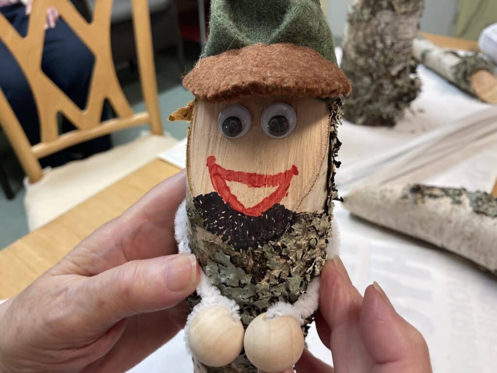 Tavalliset puukalikat saivat persoonallisen ilmeen jokaisen taitajan käsissä. Mainiot puutarhatontut koristavat nyt asukkaiden parvekkeita. Yhdessä tekemisen ilo ja onnistuminen ovat yhtä tärkeitä kuin hienomotoriikan harjoittaminen.