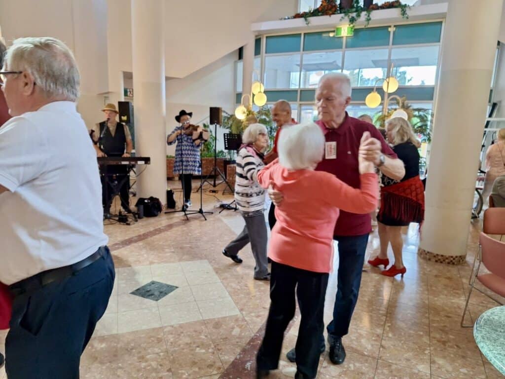 Tiistaina talossa riitti menoa ja meninkiä, kun Markku Ketola, Kata Rainio sekä Harry Lindström musisoivat kantrityyliin. Stetsonit tutisten vilut soi ja laulu raikui! Tanssiseura Sekahaun pirteät tanssittajat veivät asukkaat parketille menevän musiikin tahtiin. Iloa oli ilmassa runsain mitoin!