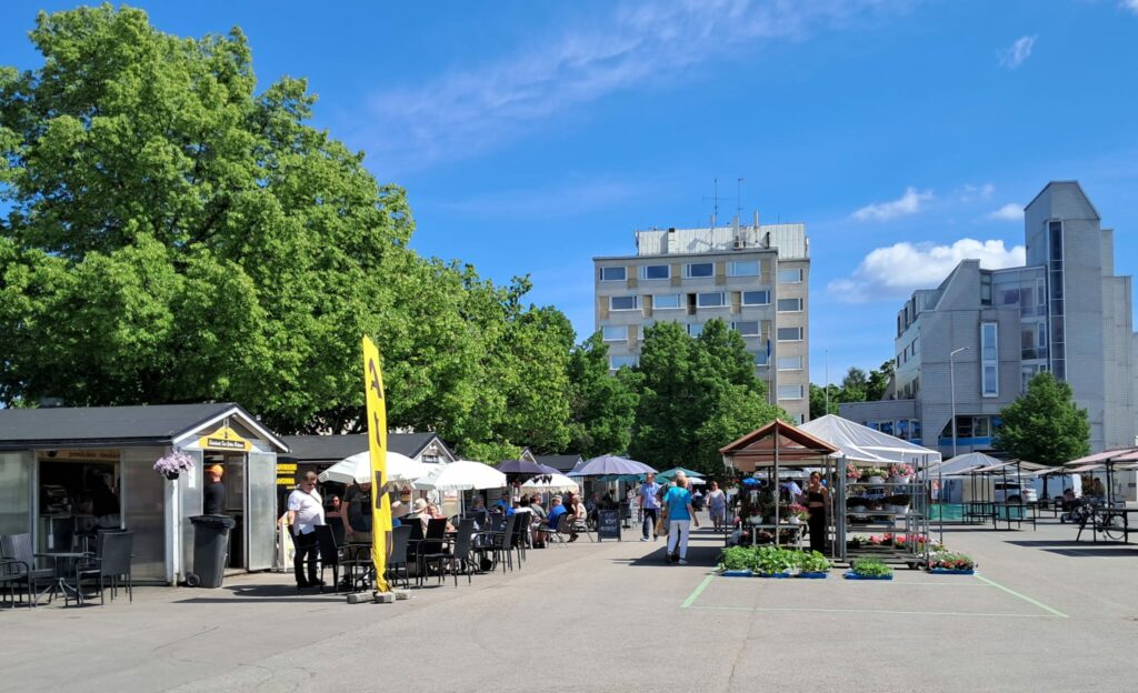 Kauniina kesäisenä päivänä voit istahtaa torikojuun kahville, ostaa kesäkukkia tai nauttia viilentävän jäätelön. Uusia perunoitakin oli jo tarjolla sekä valmiita saunavastoja. Kesän marjat vielä uupuivat, joten niiden kypsymistä odotellaan vielä 😊