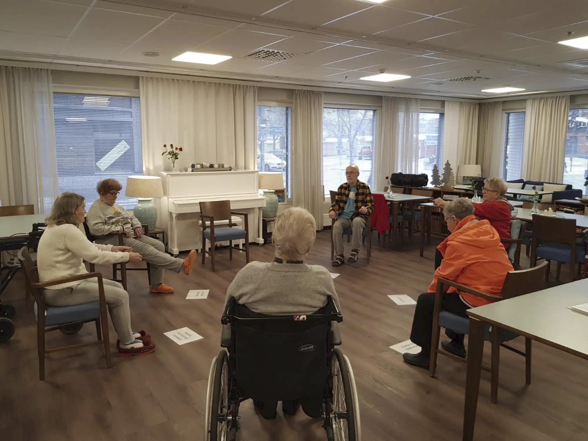 Kuntopiirissä tehdään monipuolisia liikkeitä koko keholle musiikin soidessa taustalla. Kuntopiiri on tarkoitettu kaiken kuntoisille asukkaille ja se antaa virkeyttä ja vetreyttä niin keholle kuin mielellekin.
