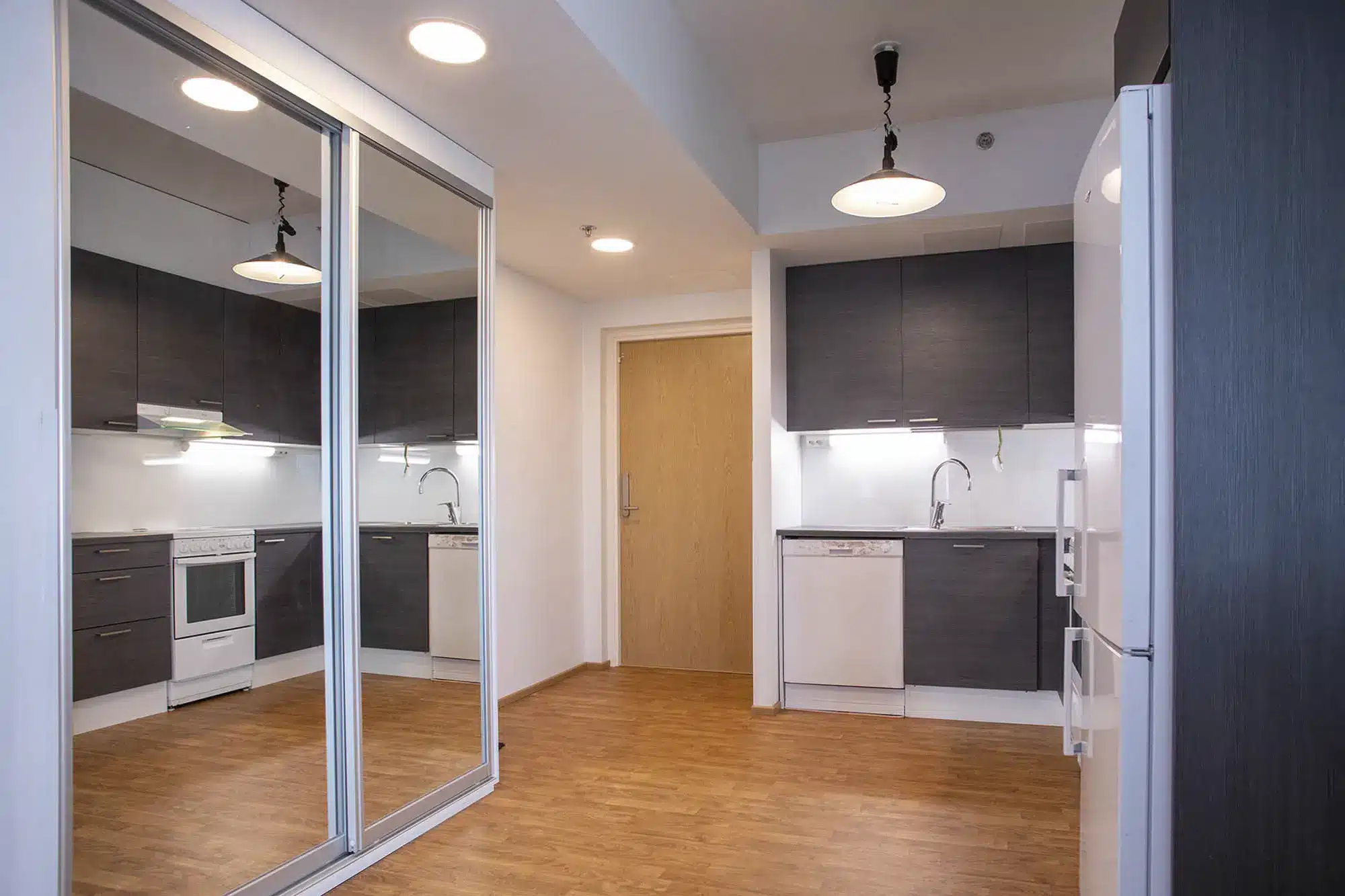 Kuukausikuluun sisältyy asunnon vuokran ja palvelupaketin lisäksi vesi sekä sähkö.