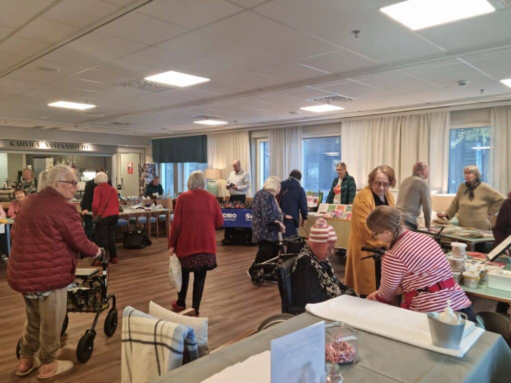 Messut olivat mukava sosiaalinen tapahtuma niin asukkaille kuin myyjillekin ja se toi iloa lokakuiseen päivään. Seuraavia seniorimessuja vietämme talossa keskiviikkona 20.5.2026.