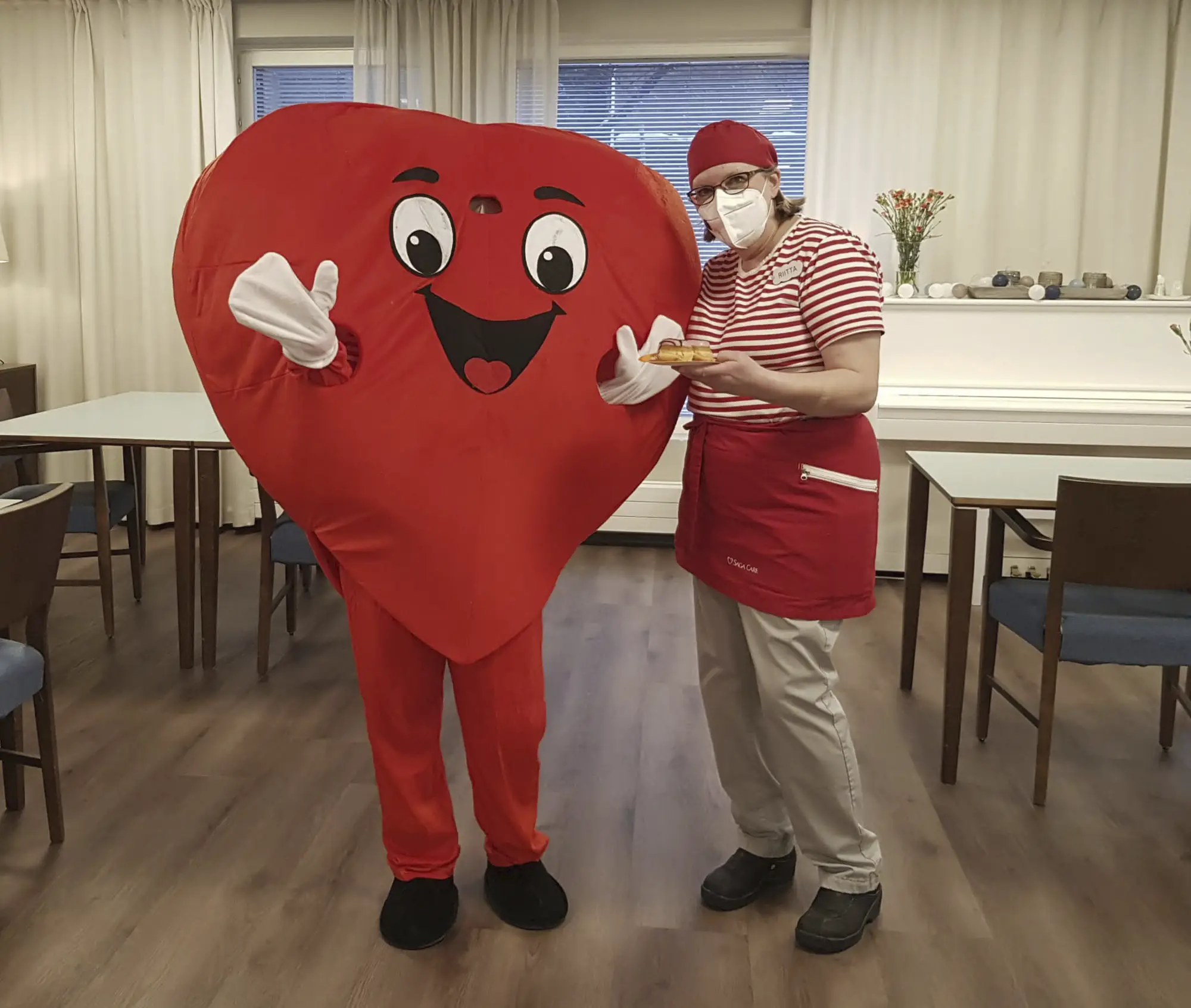 Munkkeja oli jakamassa jättimäinen sydän, joka ilahdutti ja hymyilytti asukkaita sekä henkilökuntaa.