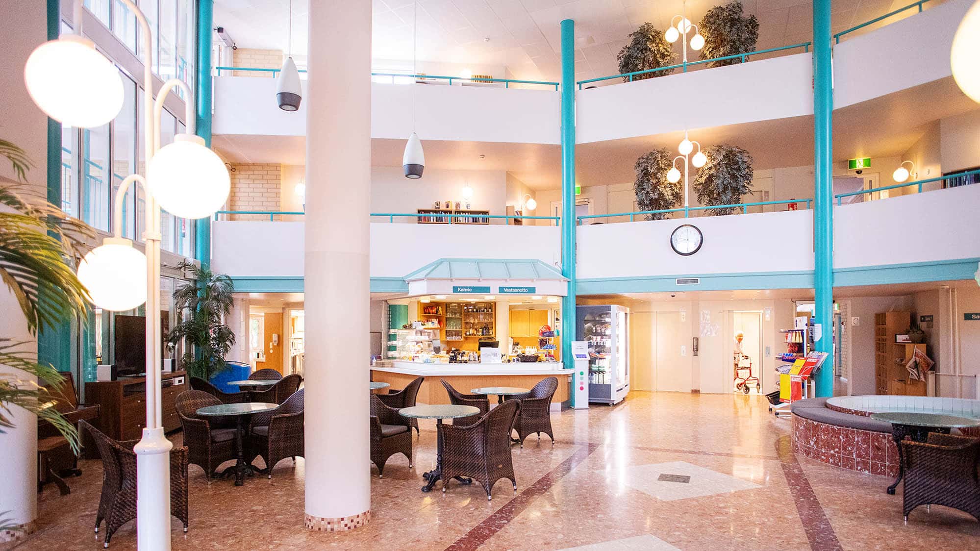 Palvelutalon asukkaana käytössäsi ovat myös talon kauniisti sisustetut yhteistilat. Meillä on viihtyisä ravintola, kuntosali sekä saunaosasto sisä- ja ulkoaltaineen. Talvipuutarhat ovat rauhallisia viihtymiskeitaita, jotka tuovat taloon valoa ja vehreyttä kaikkina vuodenaikoina. Esteetön asunto ja yleisten tilojen automaattisesti avautuvat ovet, hissit ja helppokulkuiset käytävät helpottavat arkeasi ja tukevat itsenäistä asumistasi ja omatoimisuuttasi.