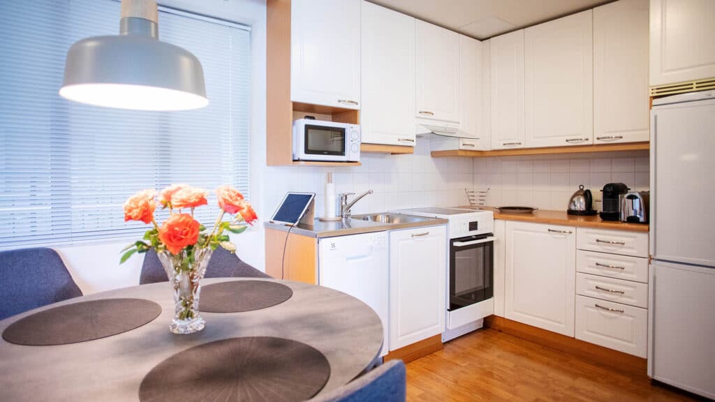 Esteetön kaksio, jossa on tilava eteinen, keittiötila, avara olohuone ja makuuhuone sekä reilu kylpyhuone. Suihkutilassa on seinään kiinnitetty suihkutuoli ja nousutuet. Keittiössä on jääkaappipakastin, liesi ja uuni. Keittiössä on liitäntä astianpesukoneelle ja kylpyhuoneessa liitäntä pesukonelle. Tilava parveke.